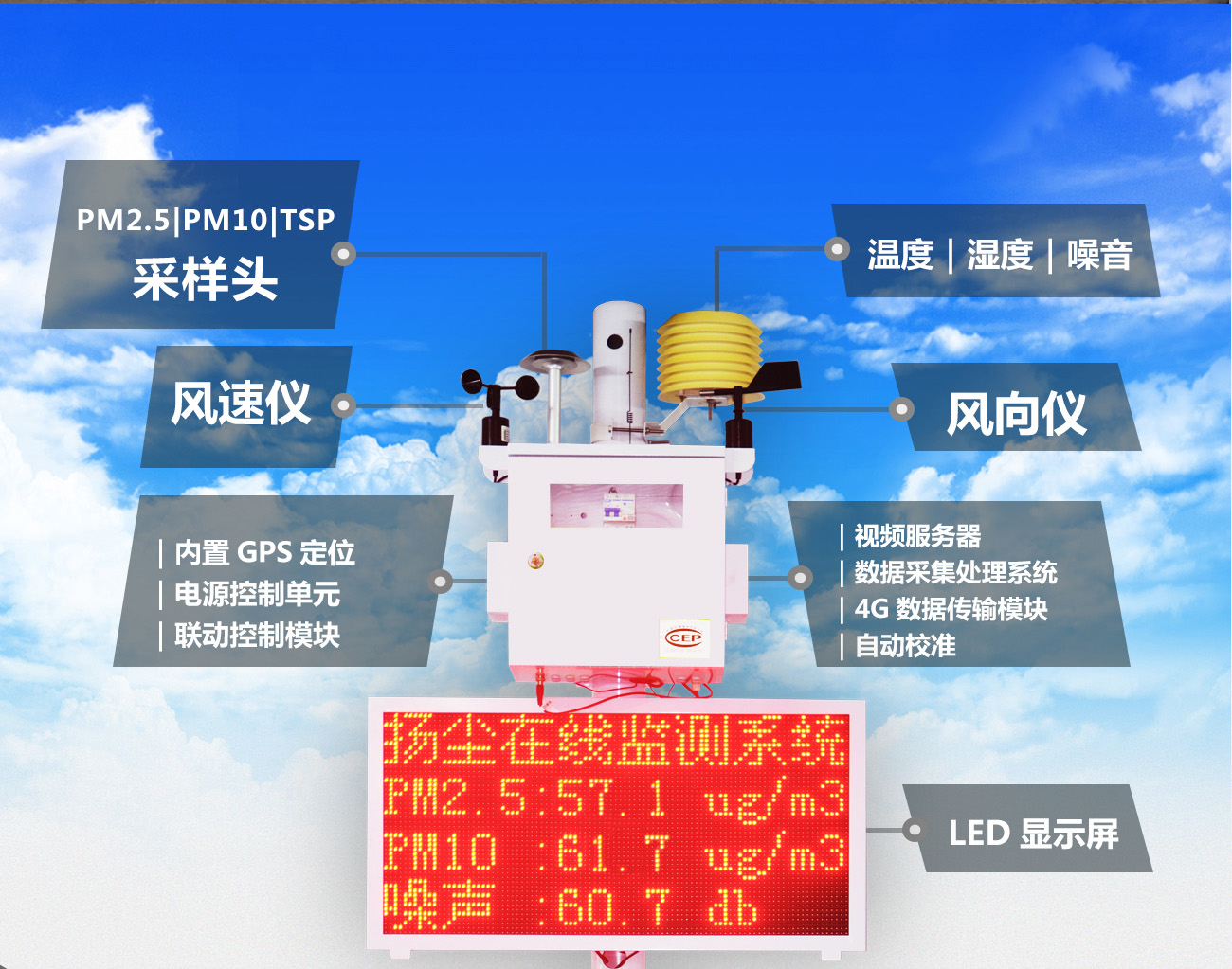建筑工地?fù)P塵噪聲遠(yuǎn)程帶視頻在線監(jiān)測(cè)系統(tǒng)